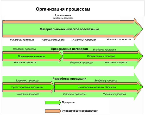 Поэтому переход на процессную структуру управления, при которой организационная структура компании состоит из совокупности бизнес-процессов и подпроцессов, «производящих» четко определенные «внутренние продукты» для конкретных внутренних и внешних потребителей, сопровождаемый оптимизацией (реинжинирингом) ключевых бизнес-процессов, является важнейшей составляющей качественного повышения эффективности управления бизнесом.