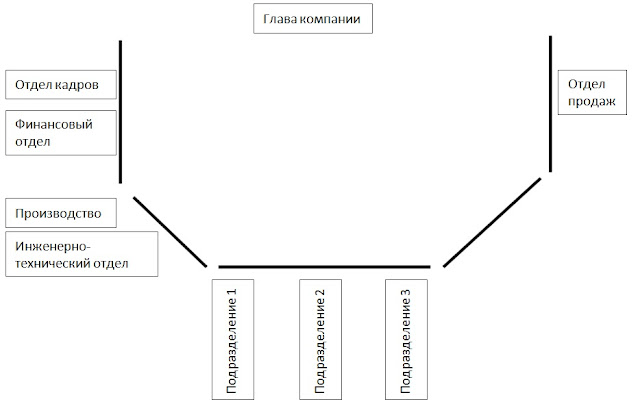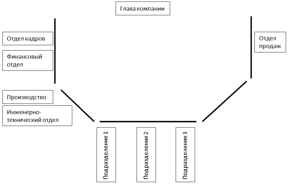 Дивизиональная структура. Корпорация разделена на главный офис (мозг компании) и операционные единицы; также определена процедура создания желаемого результата и контроля над его реализацией.